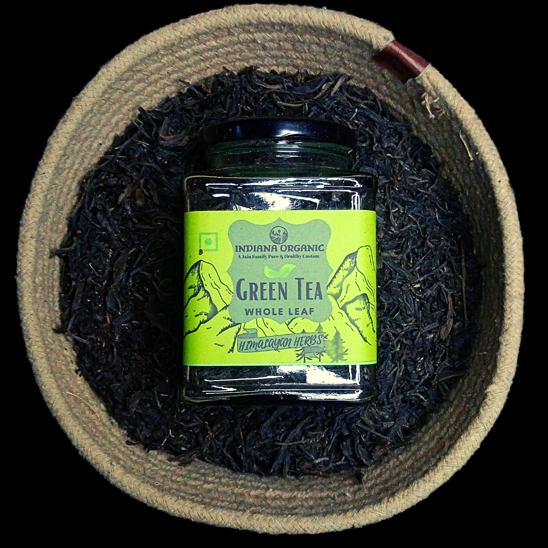 Indiana Organic Green Tea - Whole Leaf 50 Gram Glass Jar Packaging