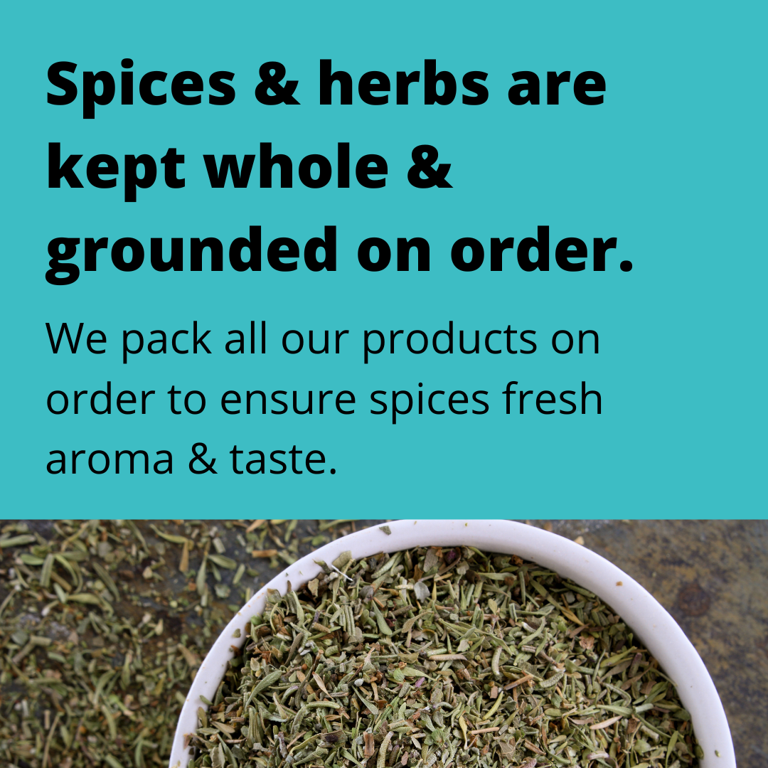 Spices get their intense flavor and aroma from volatile oils locked inside the whole spice. Grinding spices releases these oils, which means that many pre-ground spices-while convenient-have lost a lot of their magic before they reach your kitchen. The fresher the grind, the more potent the spice. We believe in providing freshly ground spices to our customers. Every product is packed after receiving order so that our customer can enjoy fresh aroma & flavor of spices & herbs. Each spice is carefully selected and curated from farms that practice environmental stewardship and empower their local communities.