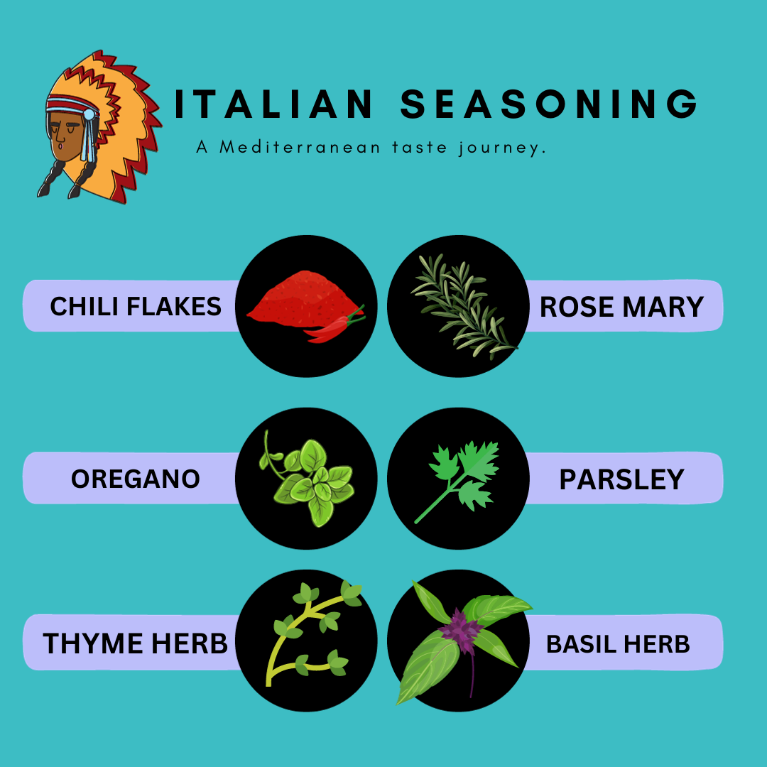 - Ingredients - Thyme, Basil, Parsley, Oregano, Rosemary, & Chili flakes.