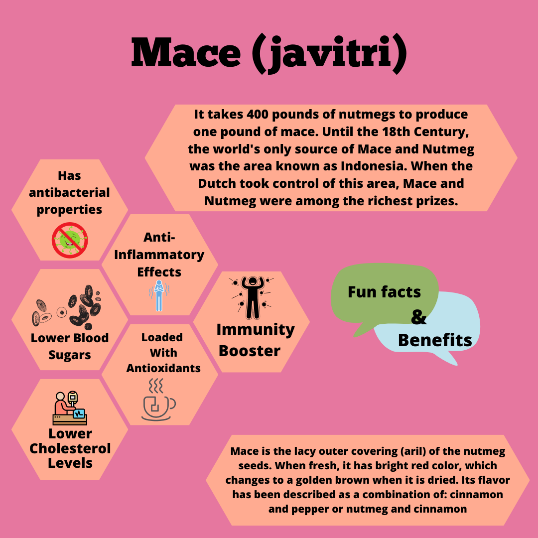 - Generic name - Mace whole, sabut javitri, Myristica fragrans.